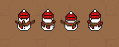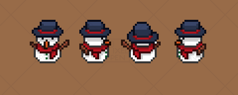 This pack includes a collection of 16×16 pixel art snowmen sprites in 4 top-down directions, perfect for winter environments, Christmas-themed levels, seasonal NPCs, or festive mini-games. Each sprite is made with clear outlines and a clean palette to ensure maximum readability, even in low-resolution projects.
